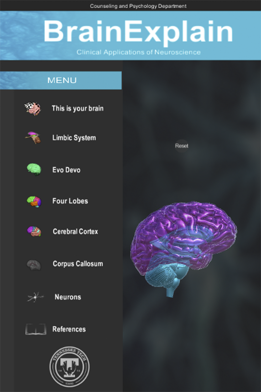 تم تصميم هذا التطبيق لتسليط الضوء على مناطق معينة من المخ البشري في 3D.