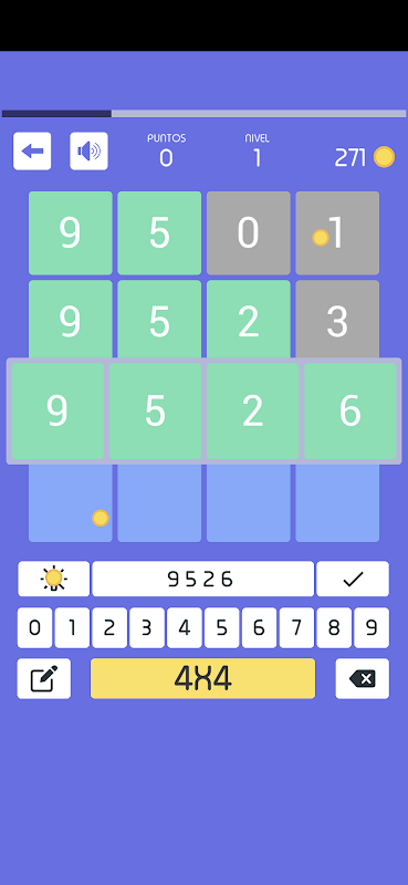 - إذا كان الرقم في المكان الخطأ، يتحول مربع الرقم إلى اللون الأصفر. إذا لم يكن الرقم موجودًا في العدد، يصبح مربعه رماديًا.