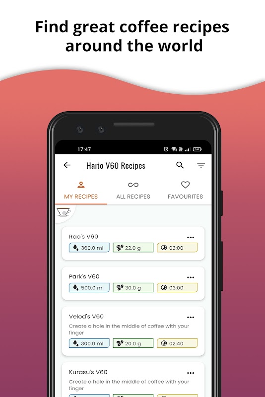 * الآلاف من وصفات القهوة التي أنشأها المستخدم مع 14 طريقة تخمير مختلفة.