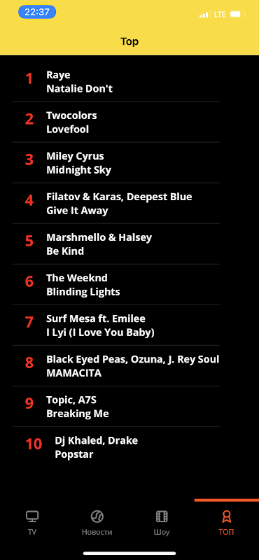 - عرض مخططات الموسيقى الحالية لقنوات تلفزيون BRIDGE MEDIA.