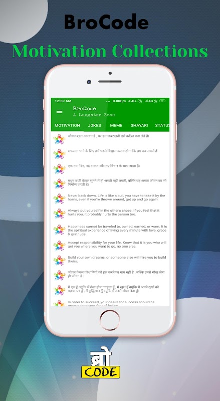 ★ BroCode هو أفضل تطبيق هندي for لـ Memes Shayari Jokes Status Motivational Quotes إلخ.