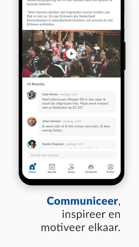 Als gemeente willen wij betrokken zijn met elkaar, efficiënt de organisatie van de kerk onderhouden, elkaar ondersteunen en nog veel meer. Onze eigen mobiele app helpt ons hierbij!