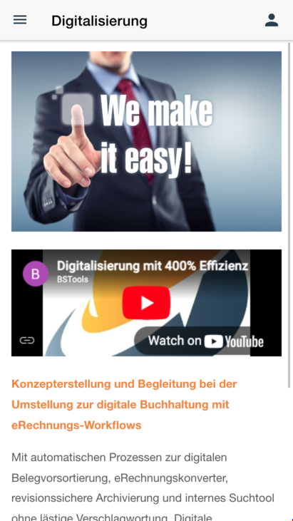 احصل على تطبيق Business-Solution-Tools.de الرسمي! يمكن الآن أيضًا استدعاء الأخبار والعروض ومعرض الوسائط وغير ذلك الكثير أثناء التنقل. اكتشف المزيد عن شركتنا أثناء التنقل وكن دائمًا على اتصال مباشر معنا. أنت متنقل - ومن الآن فصاعدًا نحن أيضًا كذلك!
