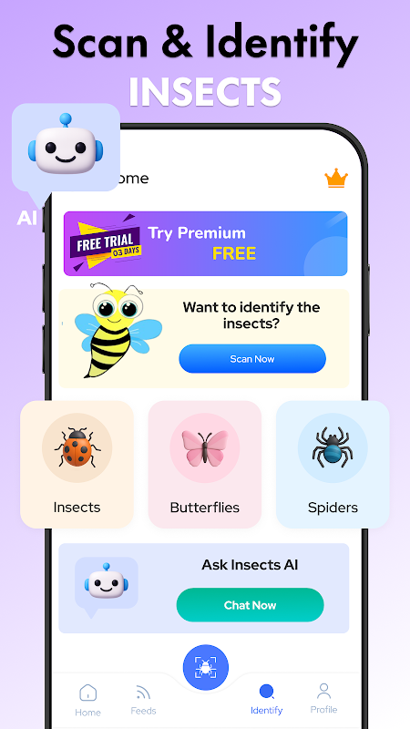 ✔️ ماسح الحشرات الذكي: يحدد الحشرات بالصورة أو بالبحث بالاسم - مثالي لتحديد آفات الحدائق، وكشف العناكب، واكتشاف الفراشات.