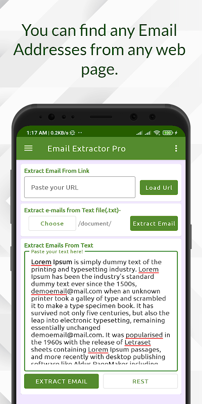 🔹 استخراج ملف نصي: قم بتعديل عناوين البريد الإلكتروني من أي ملف نصي ، مما يبسط مهامك المعقدة.
