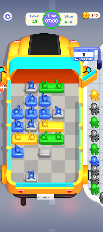 أنجز عملية إنزال سريعة في لعبة "Bus Stop Drop"، وهي لعبة ألغاز 🧩، حيث تقوم بفرز وترتيب مقاعد الحافلة 🚍 لإنزال الركاب في محطة الحافلات. 🛑