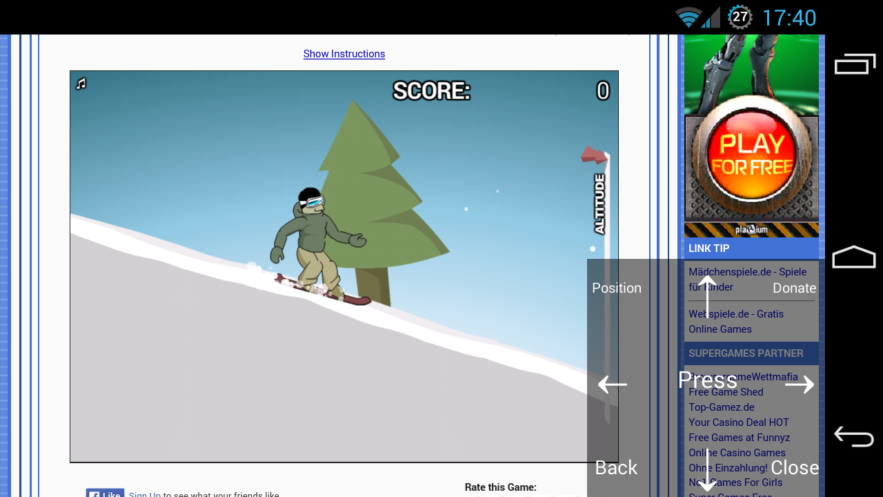 Don't have arrow buttons on your phone? No problem. Button Overlays is a simple solution to display arrow keys on your screen while you play or do something else. The arrows can be placed almost anywhere in the screen.