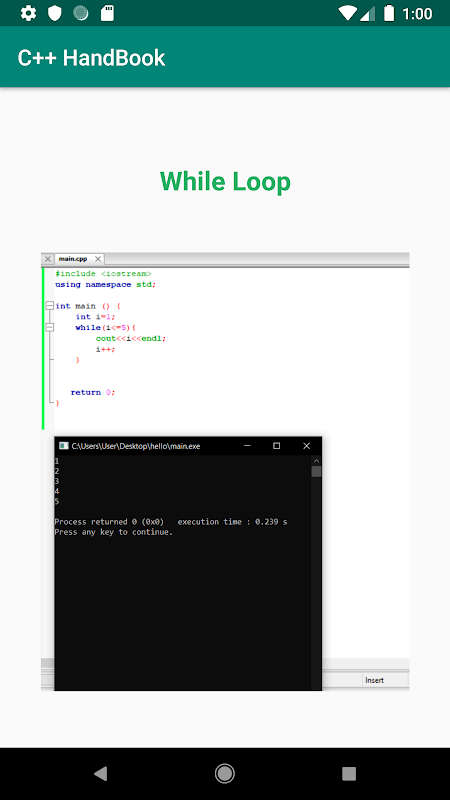 في هذا التطبيق ، يمكن لأي شخص تعلم لغة البرمجة C ++.