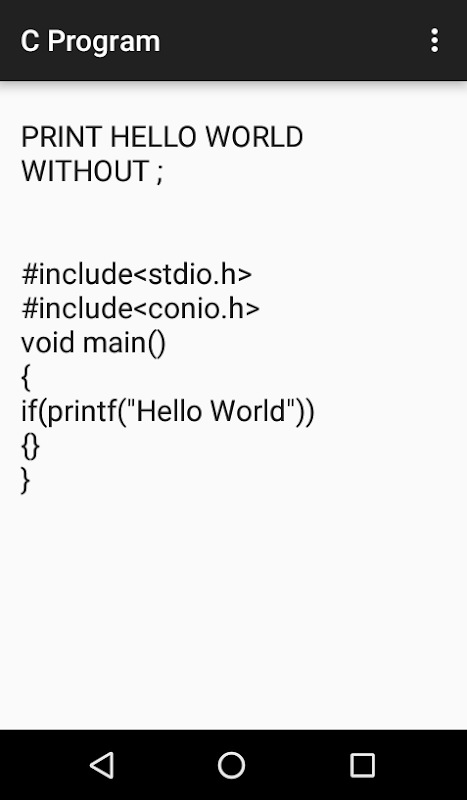 ش لا تحتاج الى بعض دليل للبرمجة؟ هذا التطبيق سوف تساعدك على out.The التطبيق يحتوي على برامج ج الأكثر المتداولة والتي سوف تكون مفيدة للمواضع والأكاديميين. ويغطي جميع مفاهيم ج مثل مجموعة، سلسلة، ومراقبة structures.currently تضاف 35+ برامج وسيتم إضافة المزيد من البرامج في التحديثات الجديدة.