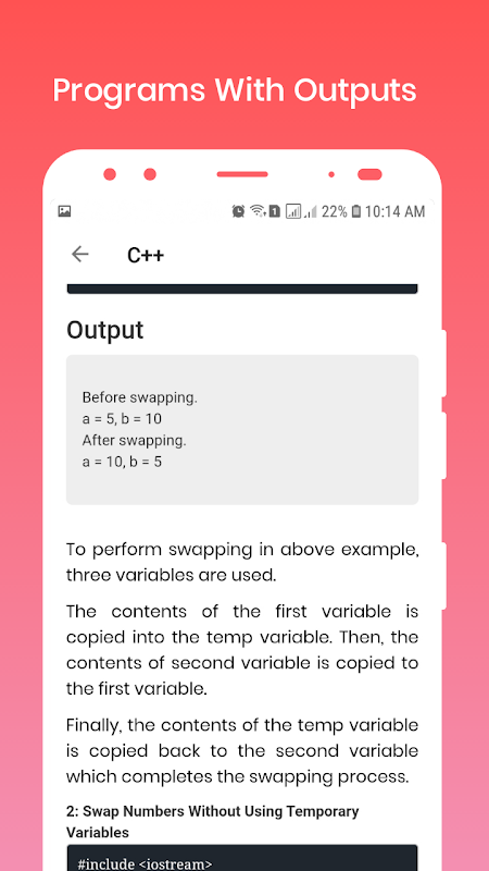 This C++ programming tutorials Application covers everything you need to learn C++ language.
