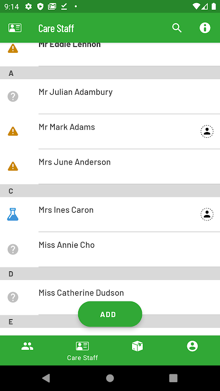 Care managers can use the app to record the COVID-19 status for each of their care staff, and can quickly add new people to the list of care receivers and care staff. Care Managers can also record the overall PPE levels for the care service, to help when re-ordering stock.