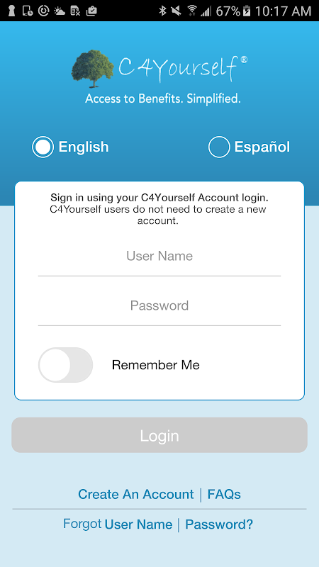 C4Yourself® التطبيق يتيح للمستخدمين الوصول إلى حسابات الخدمة الذاتية C4Yourself® بهم