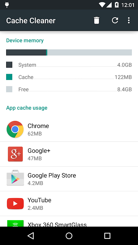 أنت لا تحتاج هذا التطبيق بعد الآن إذا كنت على الروبوت 6.0 أو أحدث. انتقل إلى إعدادات -> التخزين وUSB-> الداخلية / وحدات التخزين الخارجية وانقر على البيانات المخزنة مؤقتا من أجل مسح كافة ذاكرة التخزين المؤقت.