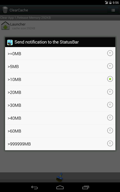الافتراضي هو عندما يتم إرسال إشعار عندما يصل مخبأ 10M.