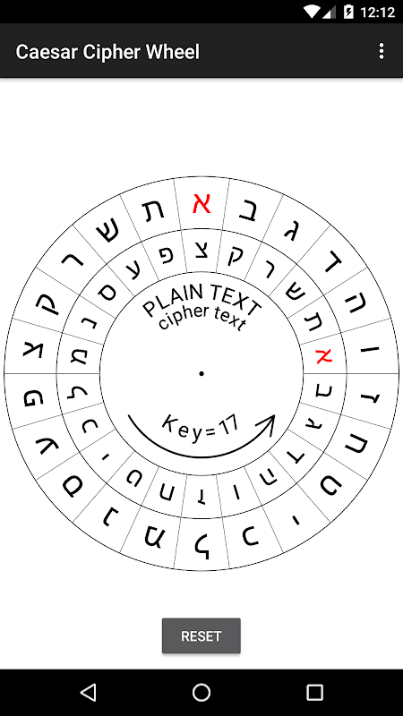 هذا قرص تشفير قيصر بسيط للغاية. يمكنك تدوير كلتا العجلتين بشكل فردي (أو لا). يمكنك قفل اتجاه الشاشة ، والإبقاء على الشاشة قيد التشغيل ، وتشغيل الاهتزازات وتشغيل الصوت. يمكنك عكس الأبجدية المختارة ("أسلوب atbash").