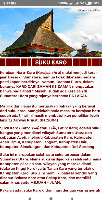تطبيق ترجمة قاموس الإندونيسية - كلمة كارو كاملة مع أعمال الكلام وتاريخ موجز لتطور قبائل كارو في إندونيسيا.