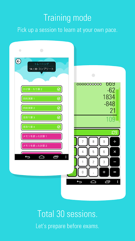اجتز 99 مستوى! لعبة تدريب حسابي سريعة تُلعب باستخدام آلة حاسبة متوفرة الآن في المتجر.