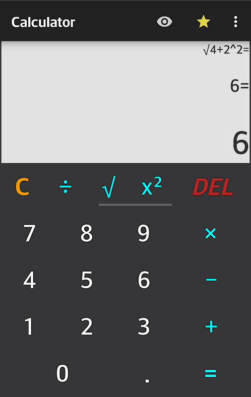 •Other Operators: %, ±, x², √ and many more to be added in next versions. To access them all, simply scroll from right to left or vice versa at these buttons. Or just hold % and drag to the left.