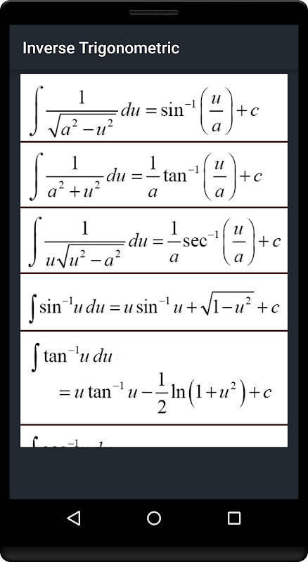 It includes Exponential, Logarithmic, Trigonometric, Inverse Trigonometric, Hyperbolic, Inverse Hyperbolic formula.