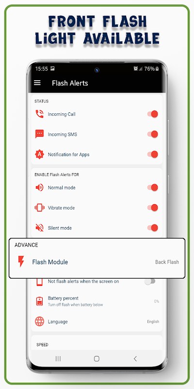 ✅ **تنبيه بالفلاش للمكالمات والرسائل القصيرة.**