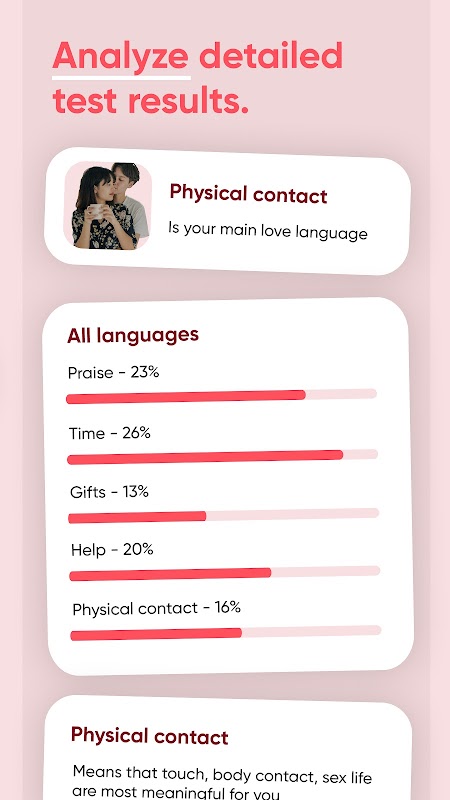 يساعد كل اختبار في التعرف على شريكك وبناء خطة عمل أكثر تفصيلاً له (لها) ، بحيث تصبح العلاقة أكثر انسجامًا.