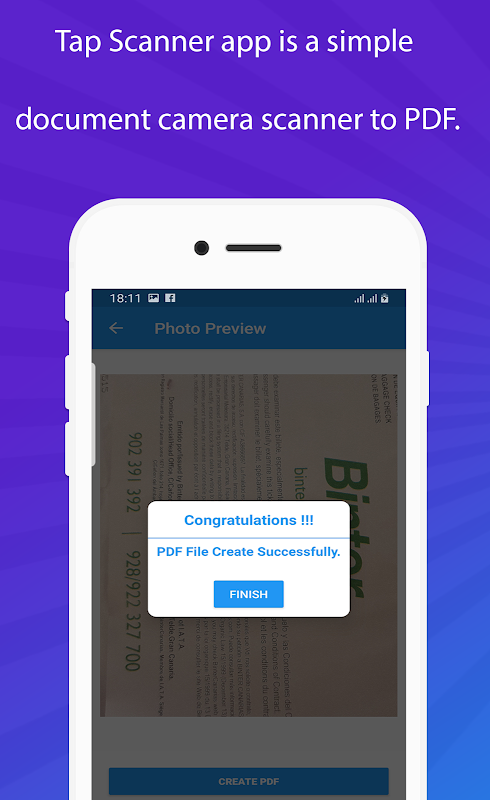 Camera Scanner is a simple app that make your phone like a mini scanner, scan documents, images... and convert them to pdf so you share it to a company or your friends, Camera Scanner lets you scan faster any kind of documents images, bills, books, notes and anything that needs to be scan to pdf, scan with highest quality and convert immediately into PDF.