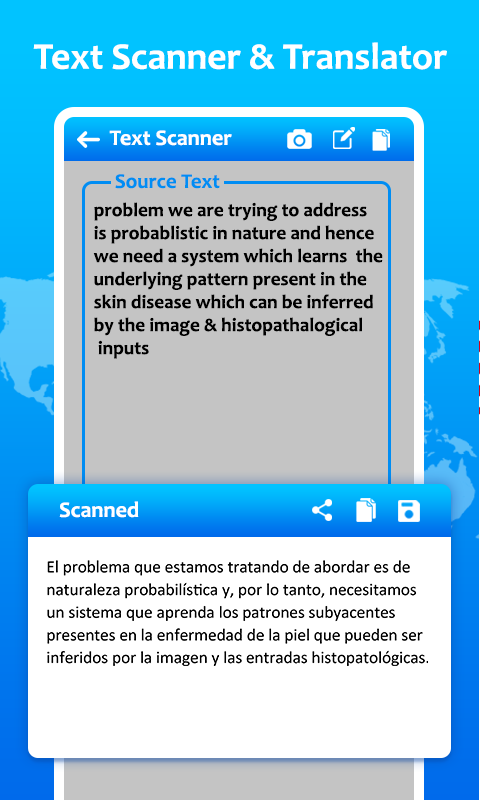 👉 مترجم كل اللغات: يترجم تطبيق مترجم النصوص النص بعدة لغات. ما عليك سوى مسح المستند ضوئيًا بأي لغة وترجمة النص الممسوح ضوئيًا إلى أي لغة أخرى.