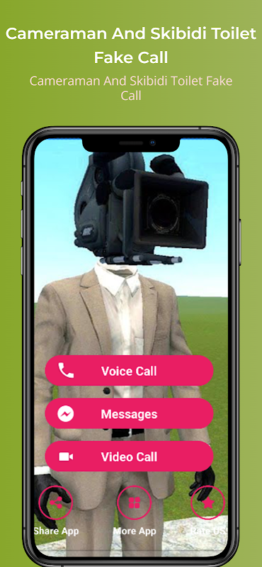 باستخدام هذا التطبيق ، يمكنك بسهولة الحصول على مكالمة فيديو مزيفة ومكالمة صوتية من Cameraman و Skibidi Toiletfamily.