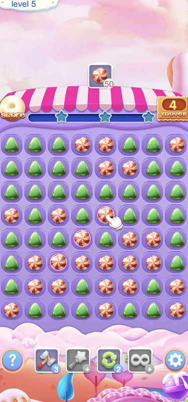دلّل حبك للحلوى مع لغز وصلات الحلوى الجذاب هذا! قم بتوصيل 3 قطع أو أكثر من نفس اللون في أي اتجاه: لأعلى ولأسفل وقطري...الاحتمالات لا حصر لها!