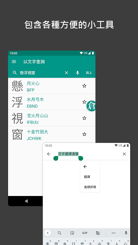 • نسخ النص من أي تطبيق سيعرض رمز Cangjie.