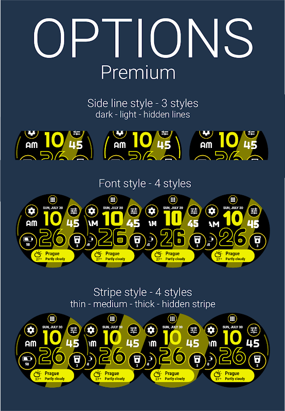 ★ القدرة على تغيير التمييز أو لون الخلفية المحدد ، وخيارات المؤشر ، ونمط الخط ، ونمط الشريط ، ونمط الخط الجانبي ، باستخدام ميزة التحرير المباشر باستخدام معاينة Watch Face
