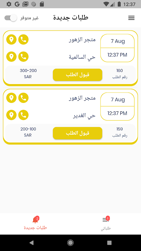 يمكن لسائق من استلام طلبات من المتاجر وتوصيلها الى العميل