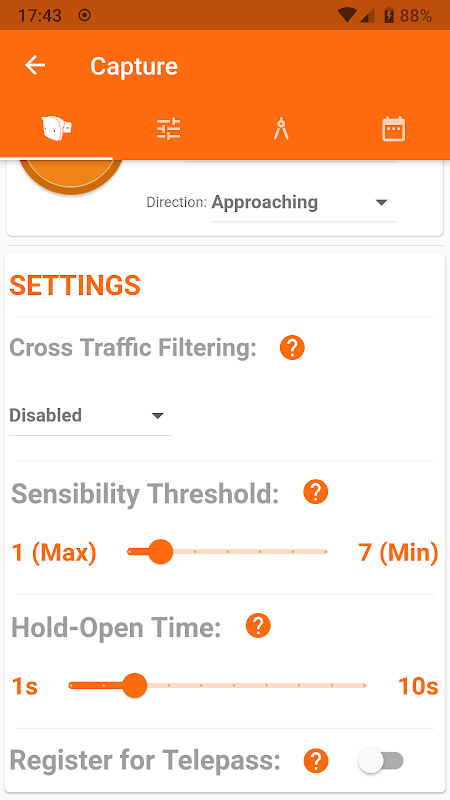 Capture هو رادار صناعي مصمم خصيصًا للأبواب السريعة ومجهز باتصال Bluetooth ونظام فتح يعتمد على Telepass.