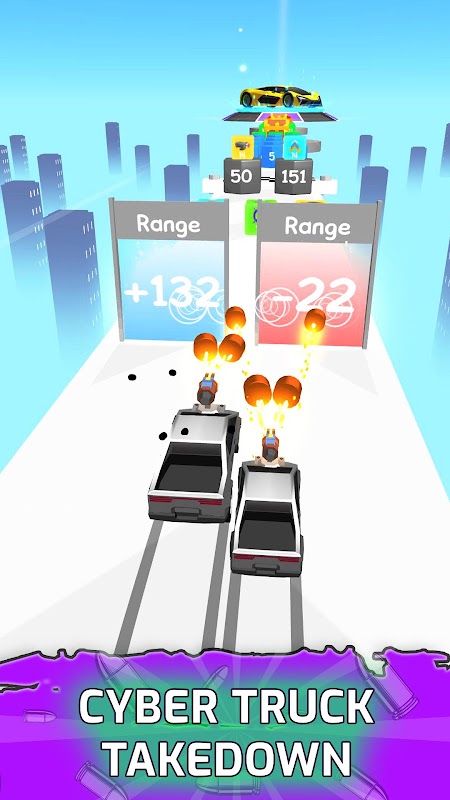 تسابق عبر مسارات مثيرة، دمر حواجز العقبات، اعبر البوابات، وافتح تعزيزات قوية تضاعف قوة إطلاق النار لديك مرتين أو ثلاث مرات. اجمع التعزيزات لإضافة سيارات إضافية إلى أسطولك وسيطر على المسار!