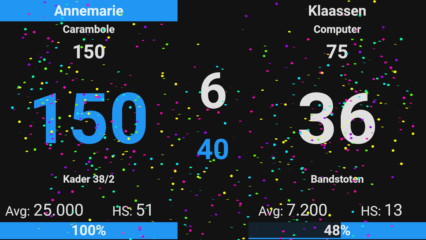 De scorebord weergave heeft nu een submenu als toevoeging gekregen. Wat voorheen de tellijst naar voren bracht, is nu vervangen met een x aantal opties die erg handig kunnen zijn tijdens het verloop van de wedstrijd. Zo kan je met dit nieuwe submenu de (vernieuwde) tellijst benaderen, spelers omdraaien, de partij herstarten en/of opslaan.