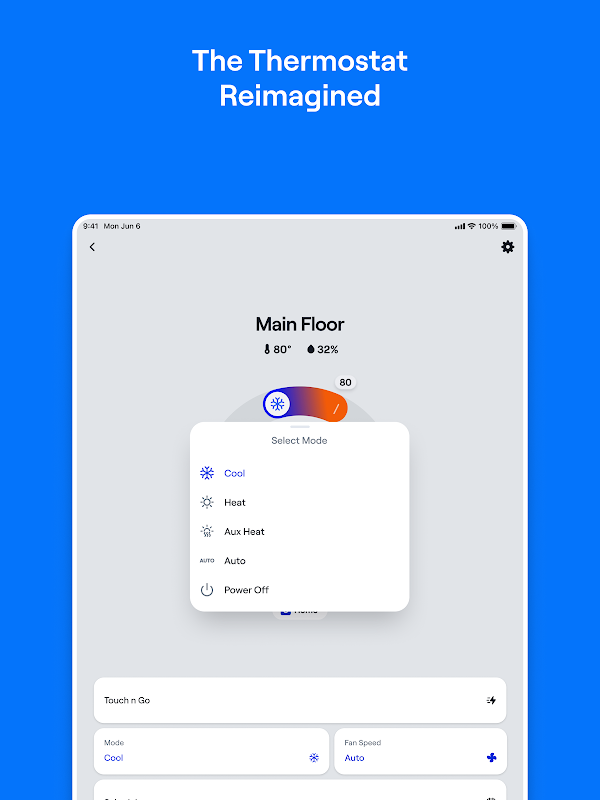 السيطرة على راحة منزلك أينما كنت تتجول مع اتصال واي فاي ® لهاتفك الذكي أو الجهاز اللوحي، أو سطح المكتب. هذا التطبيق يجعل من السهل تغيير درجات الحرارة، وتحديث الجدول الزمني الخاص بك، والحفاظ على السيطرة على كفاءة استخدام الطاقة في منزلك مع لمسة من إصبع.