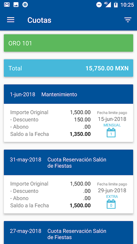 يتم توصيل كاساندرا إلى جميع البنوك في المكسيك لاستقبال وتحديد ودفع العملية تلقائيا. كما تتلقى ومدفوعات بطاقات الائتمان العمليات وبطاقات السحب الآلي (فيزا وماستركارد). السيطرة على الإيرادات والمصروفات للعمارات الخاص بك؛ مقارنة المصروفات مقابل الميزانية. فواتير ضريبية المسألة (CFDI) كدليل على دفع المستحقات. بسهولة السيطرة على التحفظ من المناطق المشتركة. إدارة طلبات condóminos من خلال مكتب المساعدة. مع وسائل الاتصال لدينا، condominos من يتم إعلامه سريعا من كل ما يحدث في الشقة.