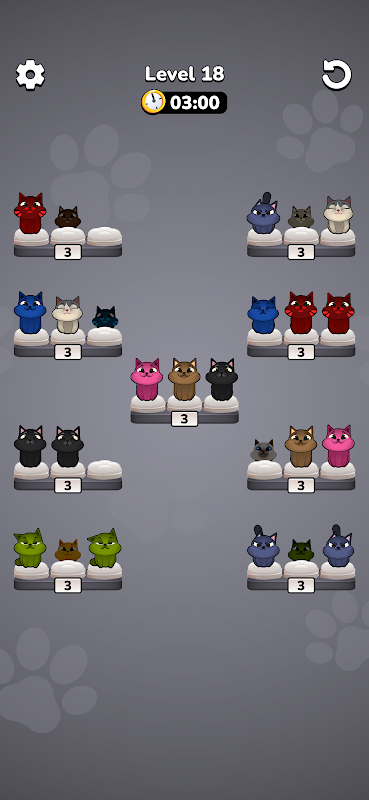رتّب الفوضى في لعبة فرز القطط! طابق القطط اللطيفة في أسِرتها للتخلص منها جميعًا. شكّل ثلاث مجموعات متشابهة لإخفاء القطط - لكن انتبه، فالطبقات تكشف عن مفاجآت جديدة! مع فرز استراتيجي، ورسوم متحركة مُرضية، وسحر المواء، كل مستوى يمثل تحديًا رائعًا. هل يمكنك التخلص من جميع الطبقات قبل نفاد الوقت؟