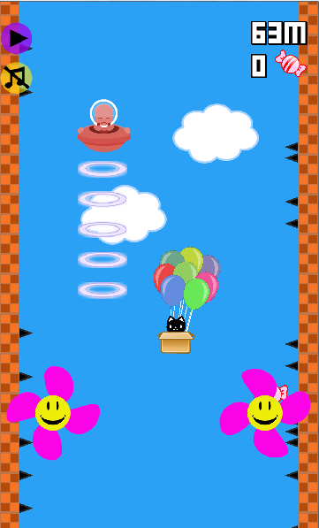 Fly cat to the moon. Avoid spike and alien by rotate friendly propeller. Collect candy and customize your balloon. How high can you fly the cat?