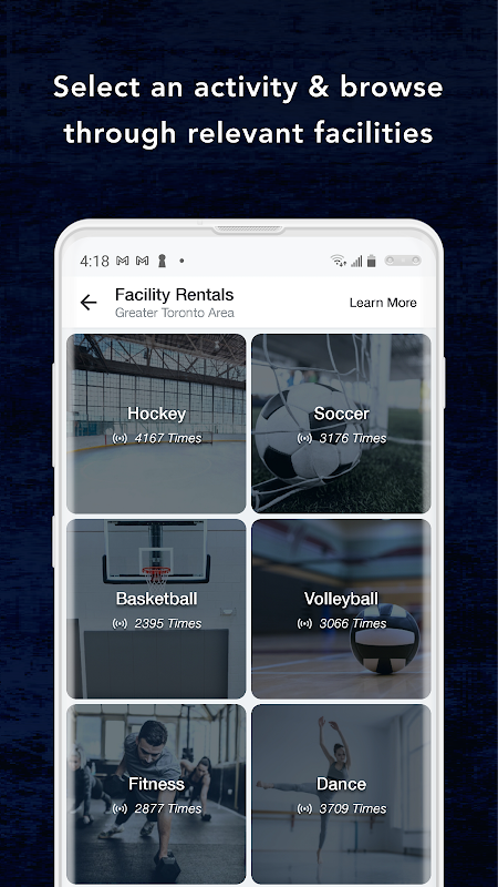 - تصفح واحجز الملاعب الرياضية ببضع نقرات فقط. تشمل بعض الملاعب: ملاعب كرة السلة، ملاعب كرة القدم، ملاعب بيكلبول، ملاعب الكرة الطائرة، ملاعب التنس، حلبات التزلج على الجليد، ملاعب البادل، ممرات الكريكيت، ملاعب تنس الريشة، أقفاص الضرب، وغيرها.