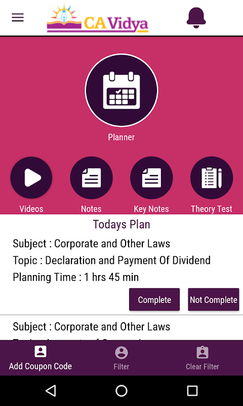 CAVidya هو التطبيق الذي يساعد الطلاب CA لتعلم الدراسات CA الخاصة بهم.