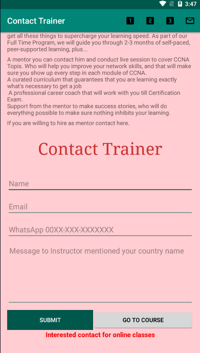 Contact Mentor for online 1 on 1 classes and coaching by qualified mentor.