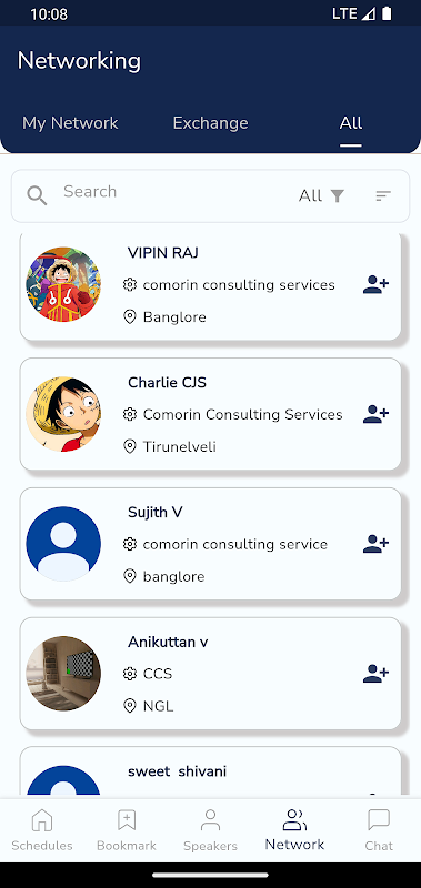 فرص التواصل: تواصل مع الحاضرين الآخرين من خلال ميزات المراسلة والشبكات داخل التطبيق.