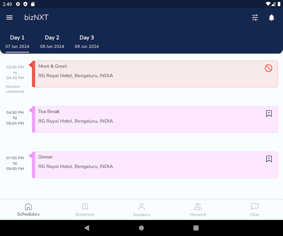 جدول أعمال مخصص: قم بإنشاء جدول أعمال مخصص عن طريق تحديد الجلسات والأحداث التي ترغب في حضورها.