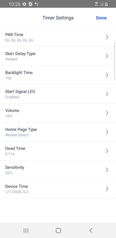 تطبيق جوال PTLink لجهاز توقيت إطلاق النار في مسابقة إلكترونيات المنافسة ProTimerBT.