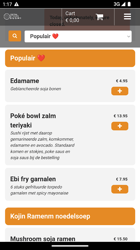 Bestel عبر تطبيق onze handig je Sushi bij Central Kitchen