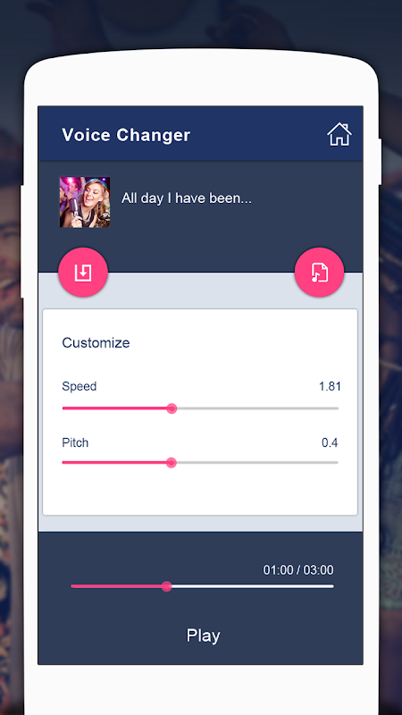 Create awesome audios by changing your voice and share with your friends and family! A highly entertaining Voice Changer application.