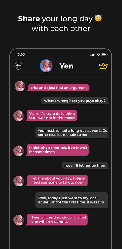 With Character AI: Girlfriend Chat, you're not just chatting with a generic AI. Your AI girlfriend has her own secrets, personality, and backstory that you'll need to uncover to win her heart. As you spend more time with your digital companion, you’ll navigate tough choices and challenges that will shape the course of your relationship. This AI girlfriend simulator offers a dynamic experience where every conversation helps deepen your connection.