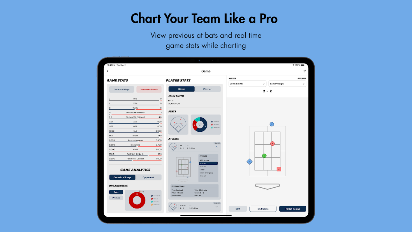 تخلص من أوراق الرسوم البيانية الخاصة بالرامي والضارب واستمتع بتجربة تحليلات المستوى الاحترافي من خلال تطبيق Baseball وSoftball Charting.