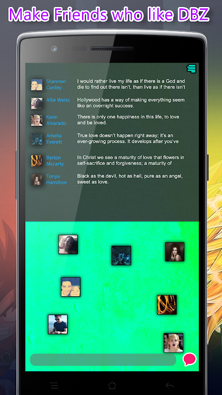 Chat for DBZ is a chat community dedicated to bringing Dragonball fans together. Download Chat for DBZ if you want to chat with real Super Saiyan fans from all over the world. Interested in learning more about the Dragonball universe? In our app you can chat about the DBZ anime, manga, or movies. Who's your favorite character? Use this app to share your take on the DBZ lore. If you want to improve your understanding of DBZ, and find other people to talk about it we want to help you. Registration is only available to you, if you are older than 13+ of age, and agree to our terms, contained within the app. Additionally, Chat for DBZ is not endorsed by Toei Animation Co. LTD.